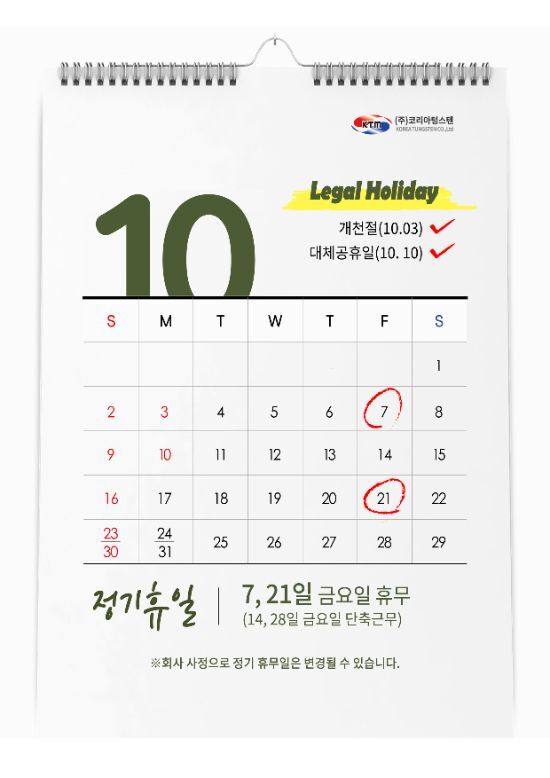코리아텅스텐 2022년 10월 정기휴무 안내
