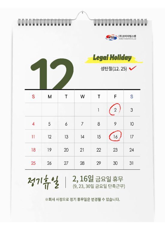 코리아텅스텐 2022년 12월 정기휴무 안내