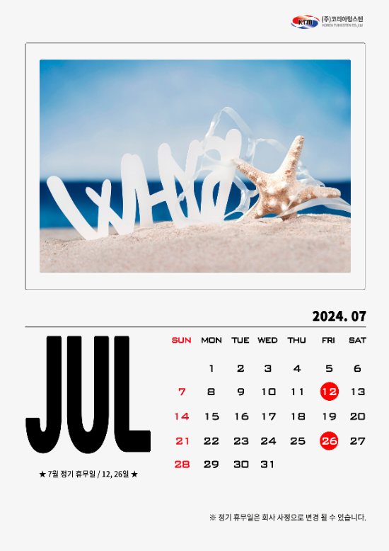 7월 코리아텅스텐 정기 휴무일 안내드립니다.
