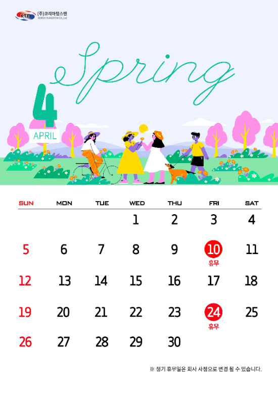 2026년 4월 코리아텅스텐 휴무일 안내 드립니다.