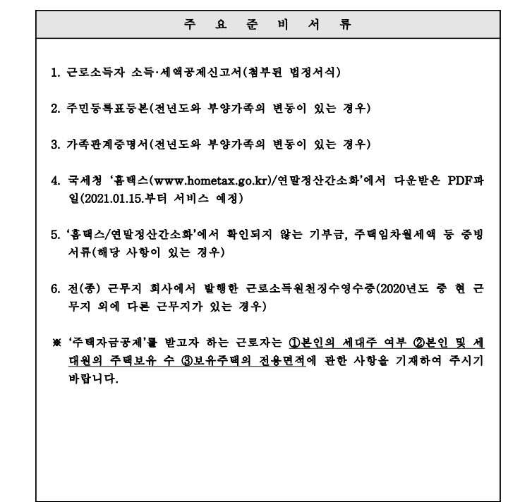 2020년도분 근로소득 연말정산안내
